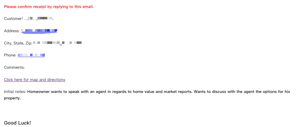 Subject: NEW LEAD - xxx(lead name) - xxx(address)