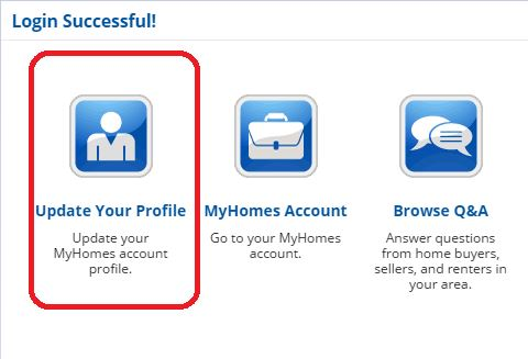 Login to your Homes.com account. Once logged in, go to Update Your Profile.