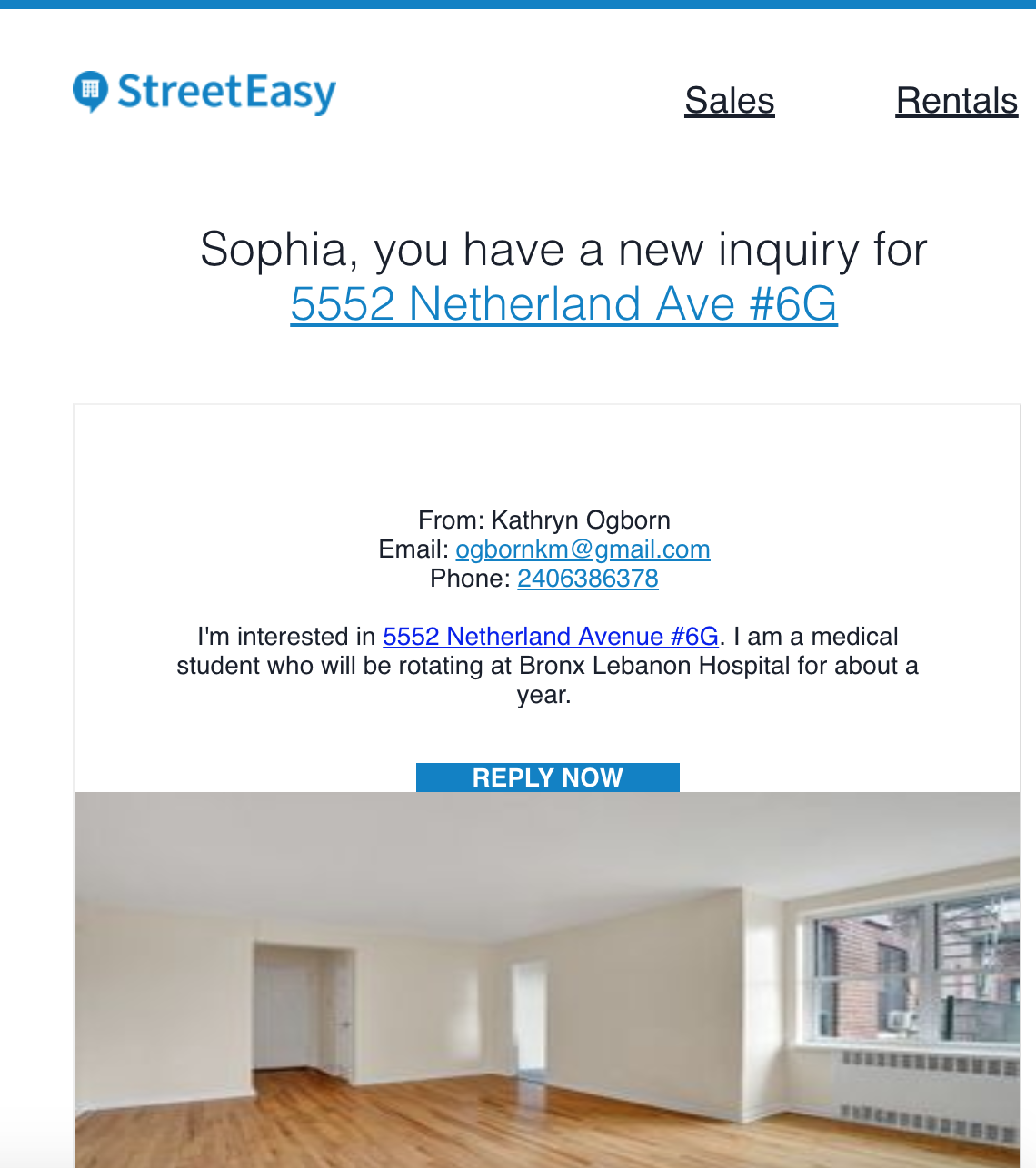 Subject: [StreetEasy Listing Inquiry] About your listing xxx from xxx