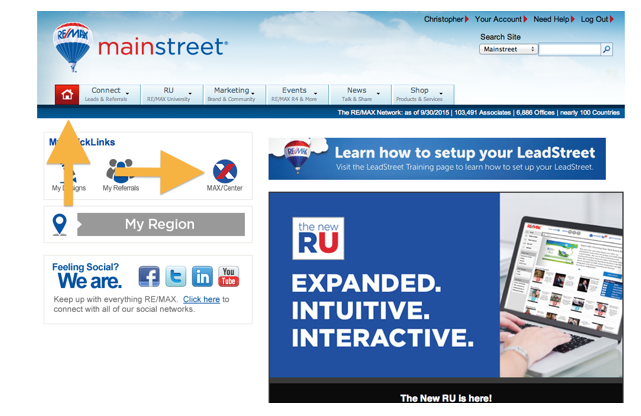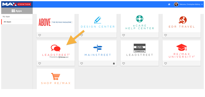 Once logged in to the User’s Account, select the Home tab, then choose Max Center. From within the Max Center, you can then select LeadStreet.