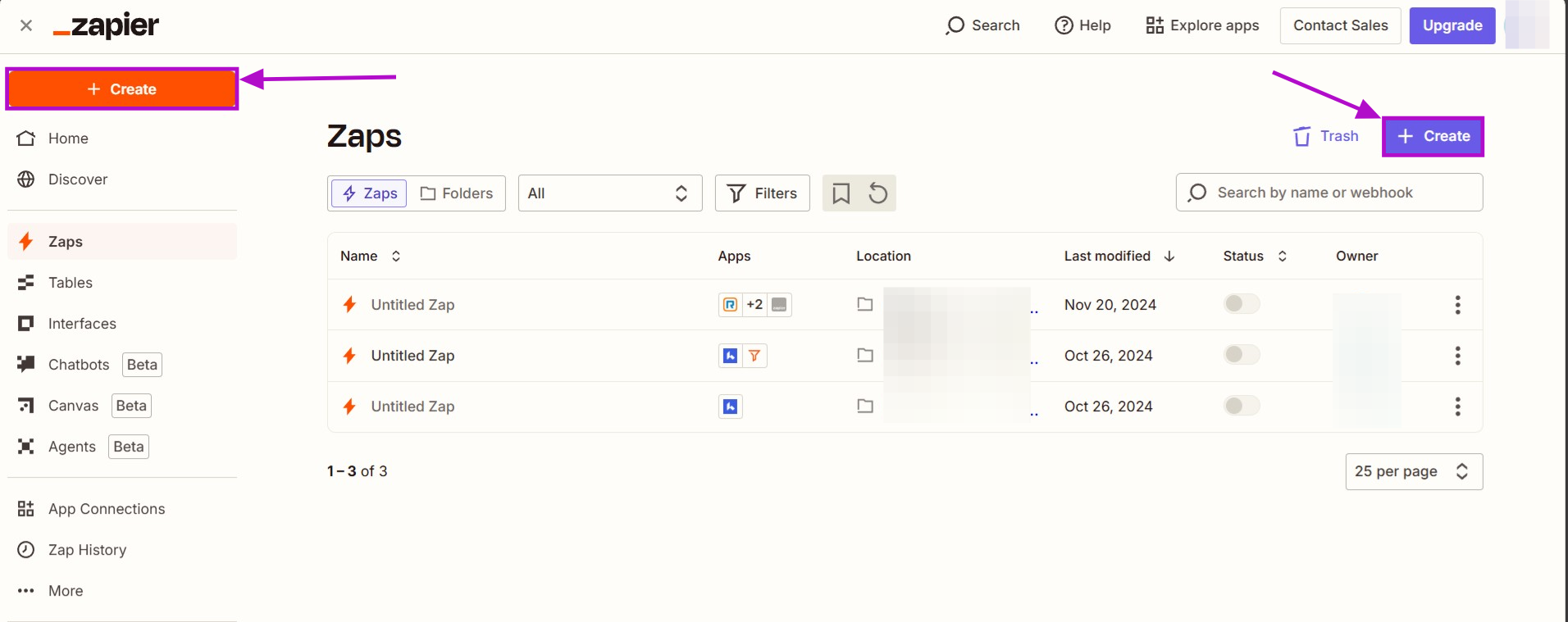1. Click on the plus sign to start the new Zap creation process.