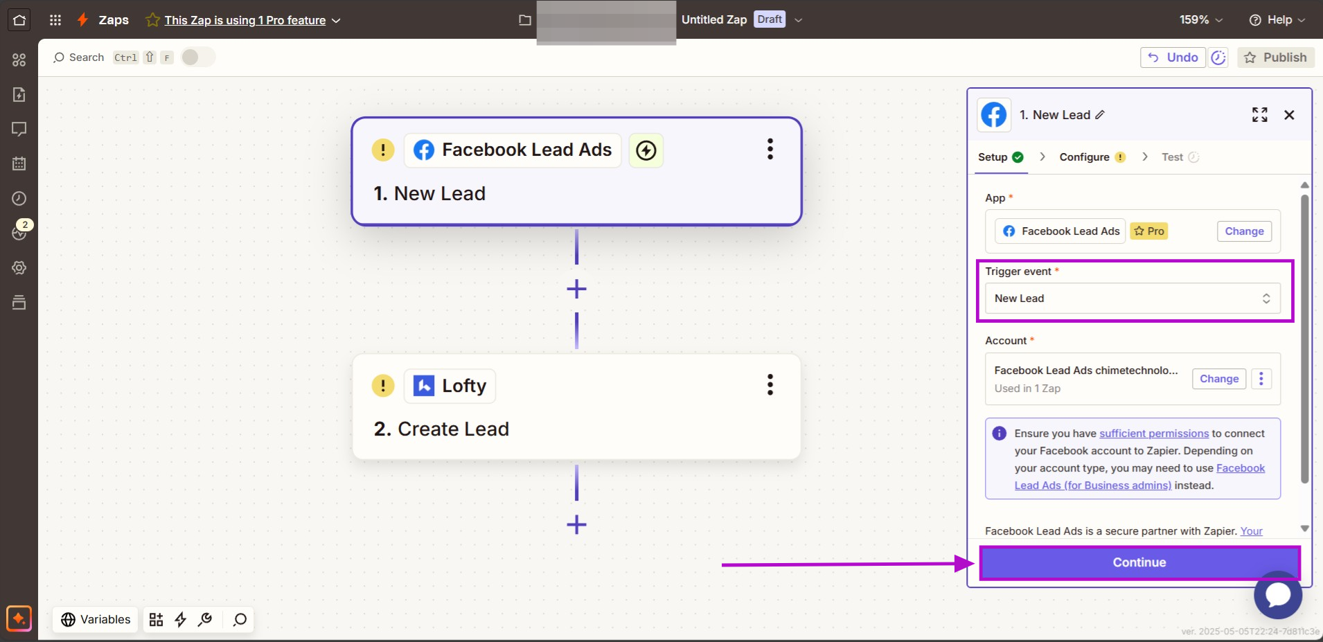 Build a new Zap from Facebook to Lofty