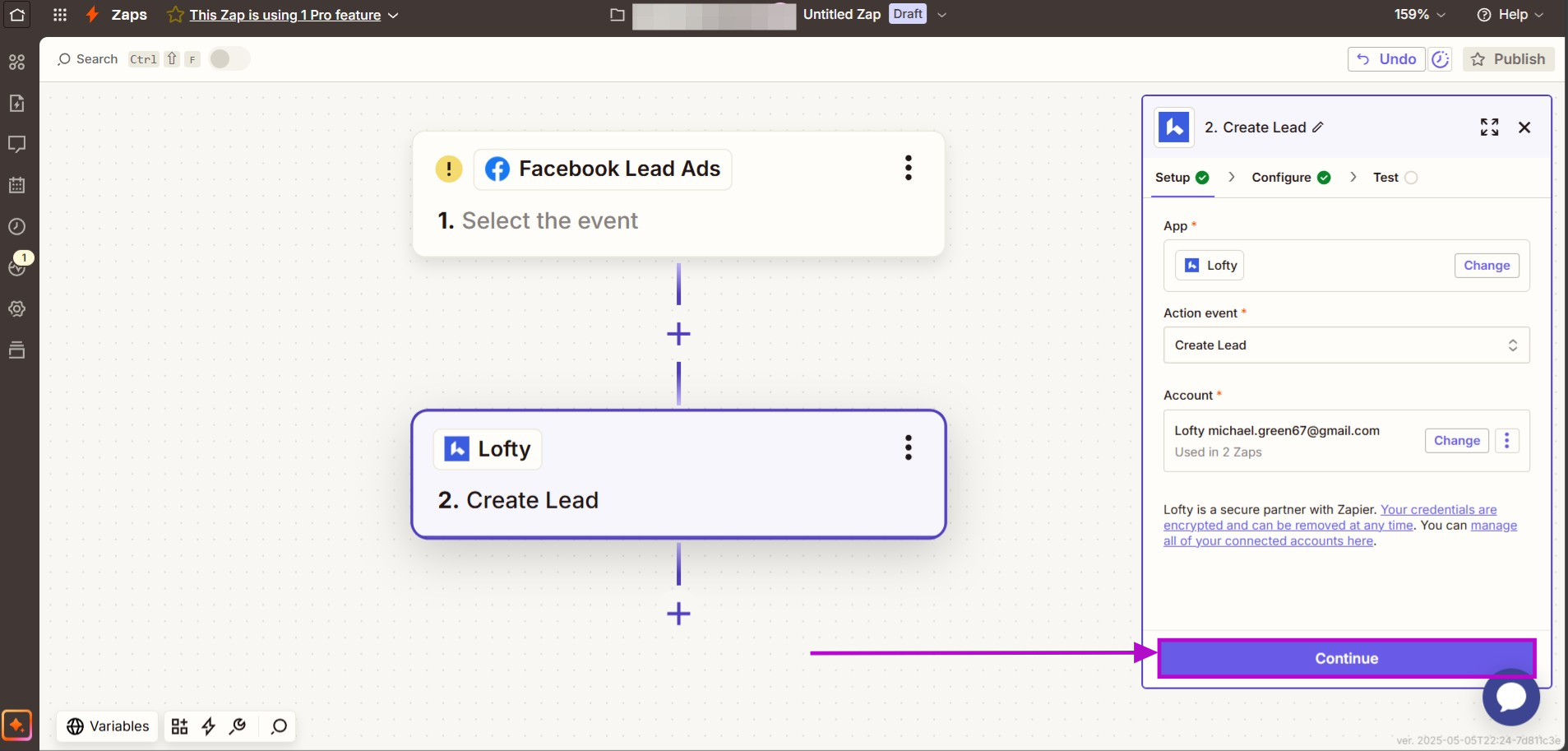 18. Now a Lofty account should be listed in the field. Click on "Continue."