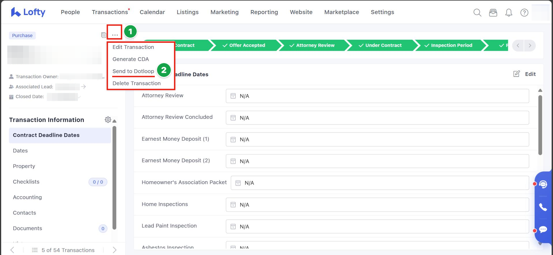 The Dotloop integration with Lofty allows you to not only import your leads into your Dotloop account but also create new loops that sync with Dotloop.