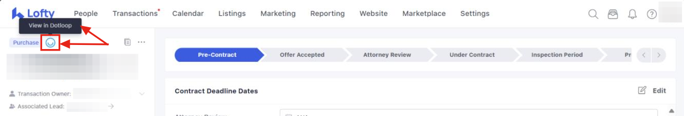 The option to view in Dotloop will also be visible on the transaction detail page:
