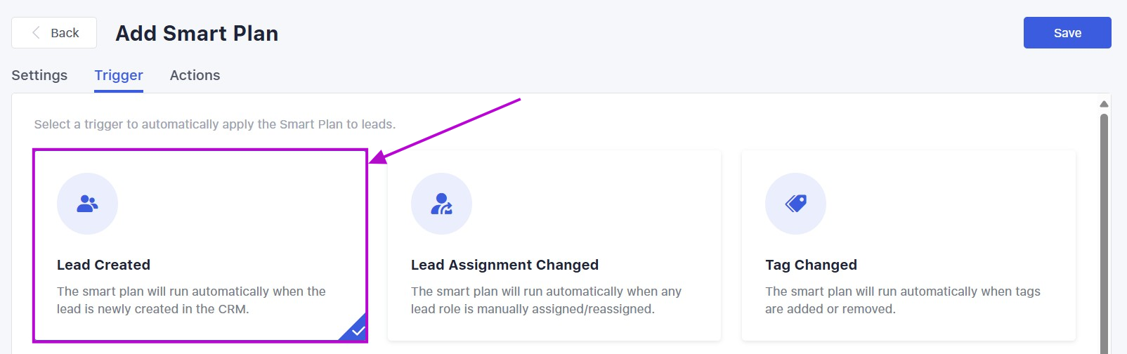 If the Trigger could apply to leads who already exist in the CRM, unchecking this box will exclude this Smart Plan from applying to those leads.