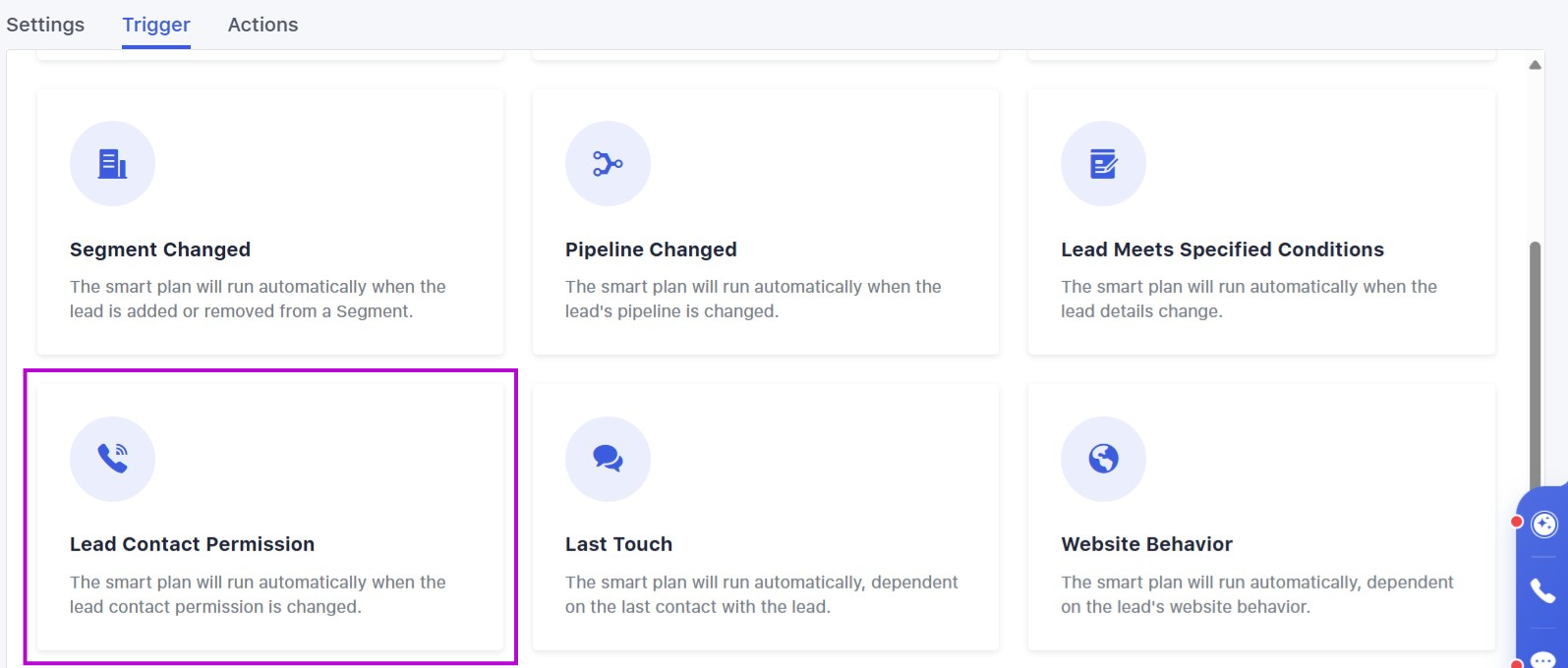 - Lead Contact Permission = The plan will trigger when the lead contact permission changes to match the setting.