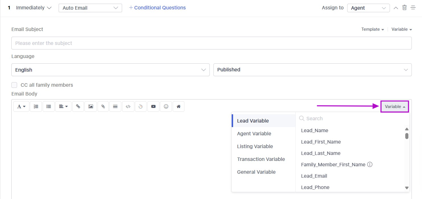 More information regarding lead and agent variables can be found in this article: Email and Text Variables.