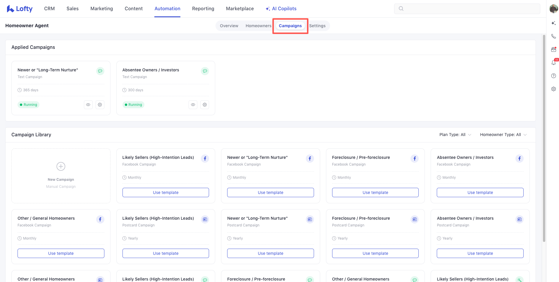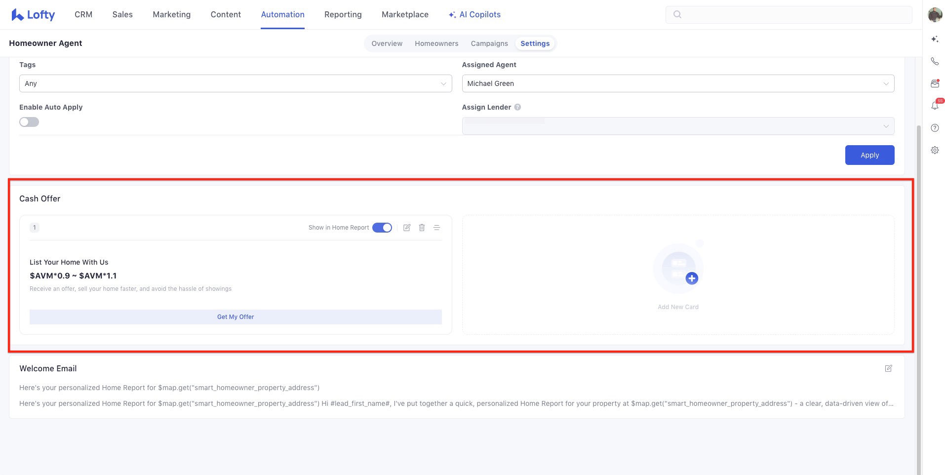 - Go to a Seller or Homeowner Lead and select “Automations.”