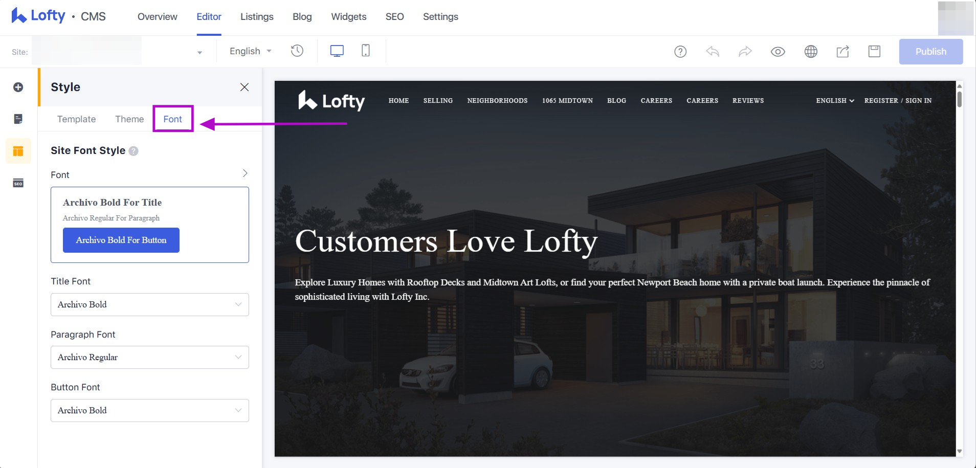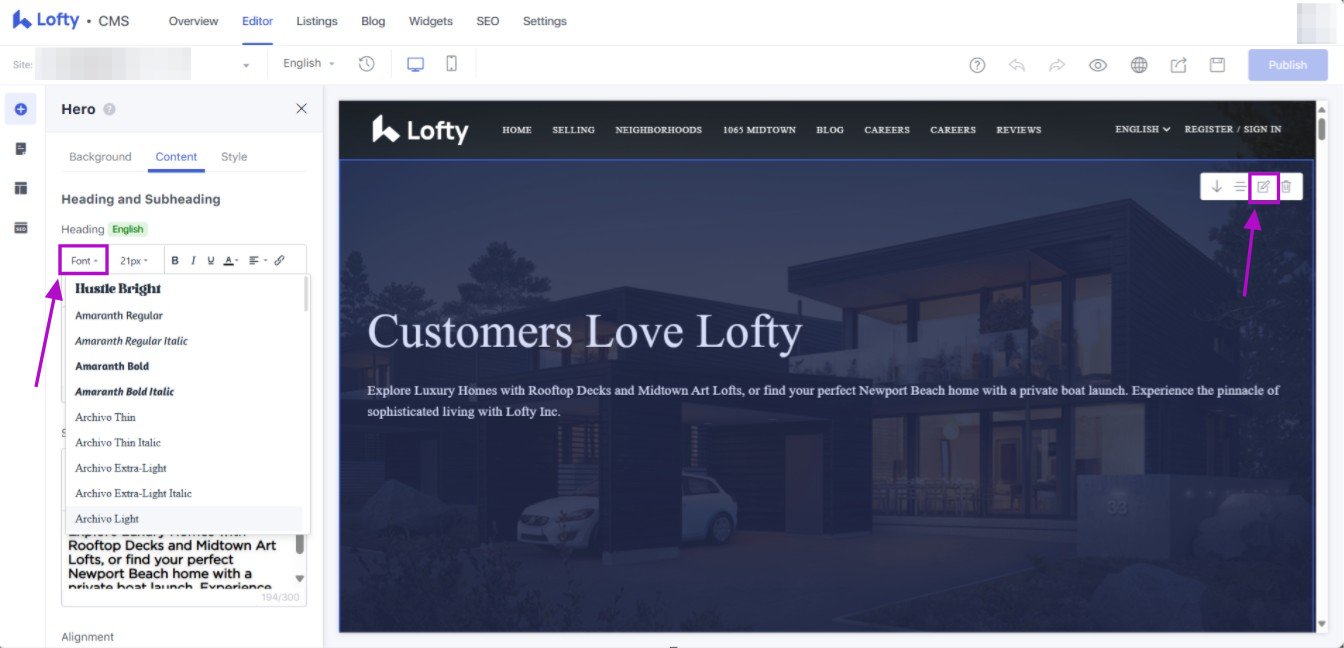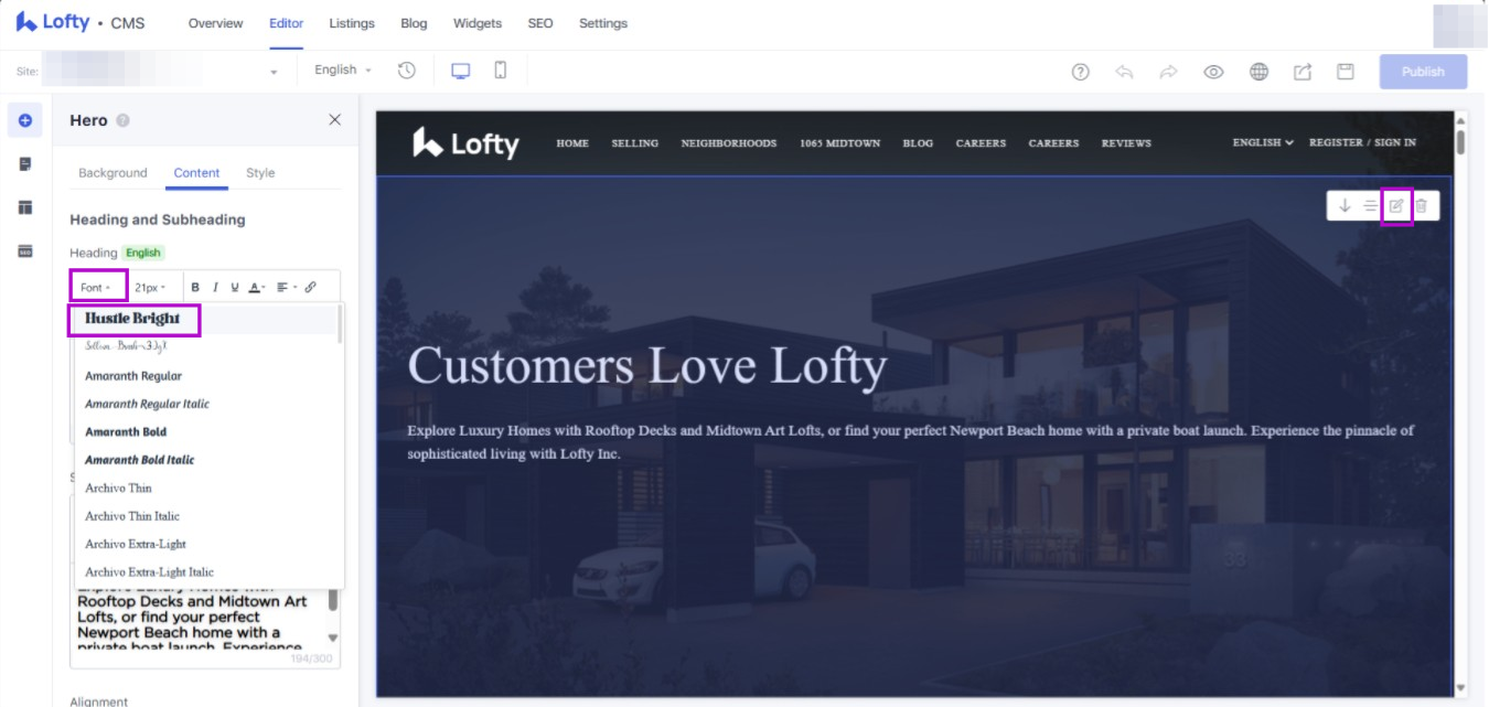 Every individual block and/or location that allows for text style modification within the Lofty CMS will also allow for the Font to be customized after this update. This includes website headers, footers, blog posts, and other text content.